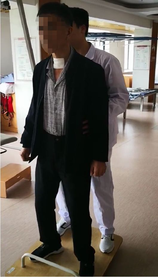 康复治疗师通过运用国内外先进技术及设备,结合针灸、推拿等传统的中医康复治疗方法,经过综合康复训练,两周时间,胡叔叔气管插管已顺利拔管,可以经口进食,监护下能独立完成从卧位到床旁转移,并开始在少量辅助下进行坐站转移及站位平衡训练。