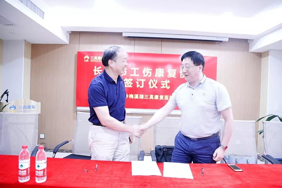 9月12日下午,长沙市工伤保险服务中心与三真康复正式签订“长沙市工伤康复定点协议”,标志着长沙梅溪湖三真康复医院正式成为长沙市工伤康复定点医院。