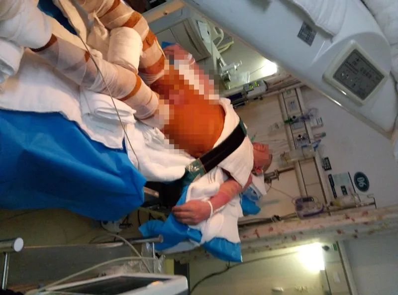 当时,波叔在工厂上班,由于突发火灾,波叔在熊熊大火中丧失意识,送去医院及时抢救后,波叔活了下来,但左上肢、腹部及双下肢大面积为深Ⅱ°~Ⅲ°烧伤,致使波叔存在严重过的认知功能、呼吸功能及运动功能障碍。▼