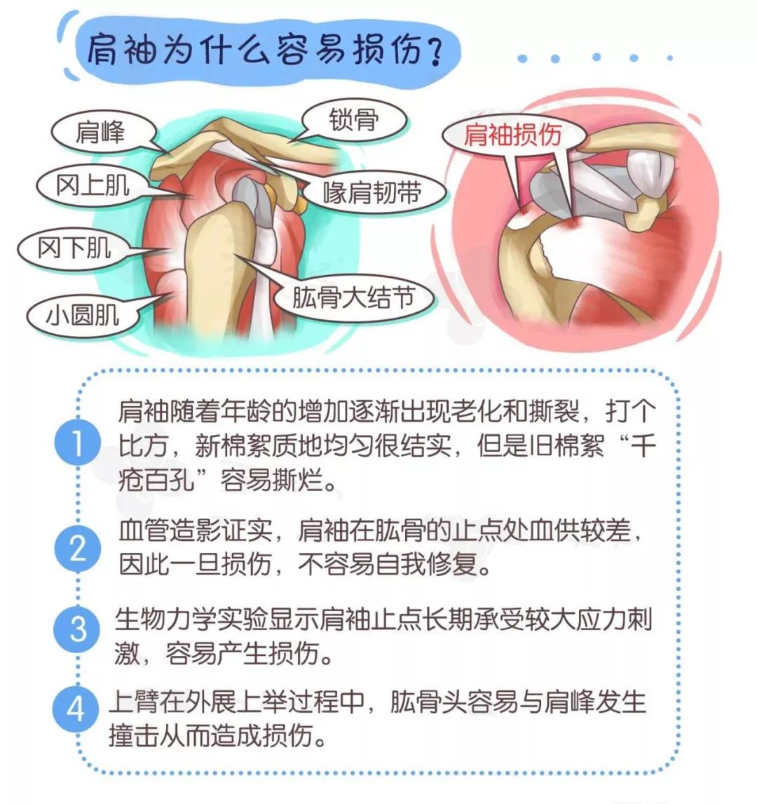 不过,由于肩袖损伤和肩周炎的症状相似,就是临床医生也可能误诊,一味地采用手法治疗松解患者肩关节,会使得肩袖组织的裂口扩大。所以肩膀疼痛、活动受限的患者,选对治疗医生、明确诊断十分关键。