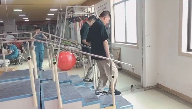 根据唐叔想早日走起来的强烈愿望,康复治疗团队及时更换治疗方案,为唐叔进行了站位平衡、坐起训练、核心稳定性训练、重心转移训练、步行训练等一系列康复项目,经过第二个月的康复治疗,唐叔已经能够在监护下独立行走。
