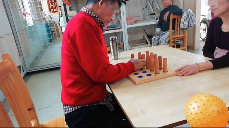 其中,ADL训练更侧重于在唐叔右手功能的恢复上面。针对唐叔的右手,在ADL训练的基础上增加了强制性运动疗法,将唐叔的左手限制起来,迫使唐叔使用右手,以促进右手功能恢复。在第三个月里,唐叔从最开始的抓放无力到现在可以完成拧螺丝的精细活动,唐叔经历了从量变到质变的过程。