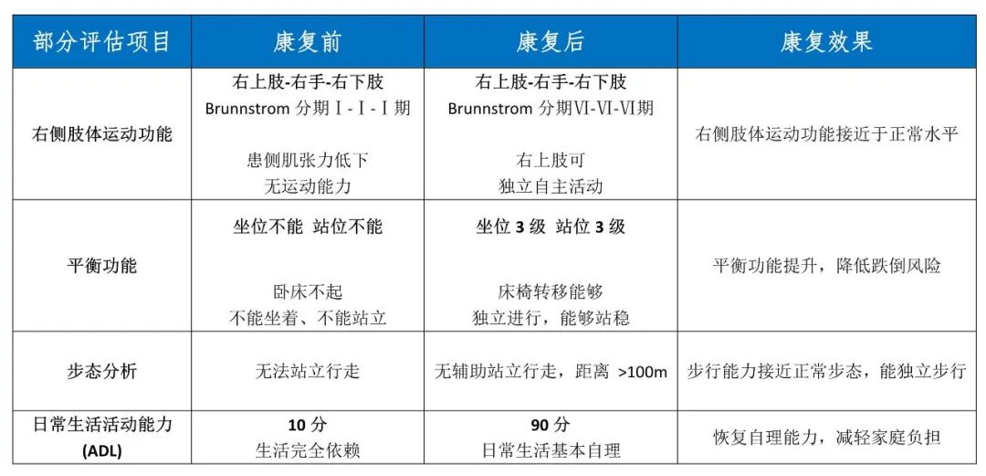根据这些问题,康复治疗团队将训练方案和治疗重心转向了日常生活活动能力(ADL)训练,在原来的康复训练上增加了步态改善训练、上肢精细活动训练。