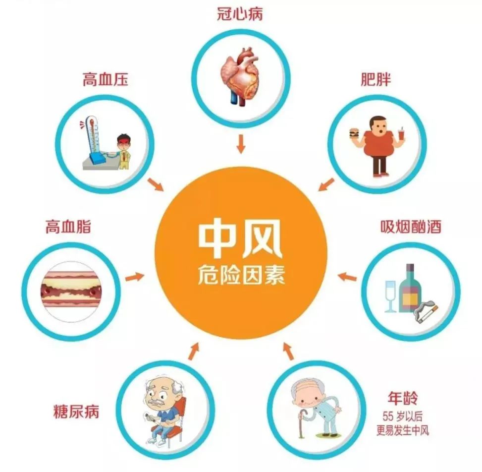 可干预性危险因素是中风一级预防的主要内容,包括高血压、糖尿病、心脏病、吸烟、酒精摄入、不良饮食、超重或肥胖、运动缺乏、心理因素等。