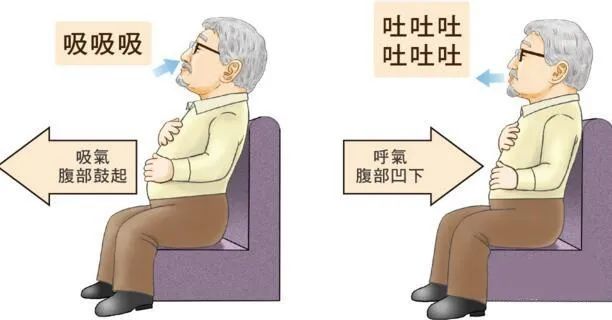 2.自主呼吸:尽量延长呼气,鼻吸气,嘴呼气;