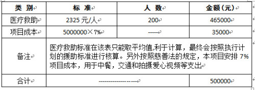 2、2018年1月至12月,按照时间推进对每个援助对象平均每人2500援助金,共救助200人;
