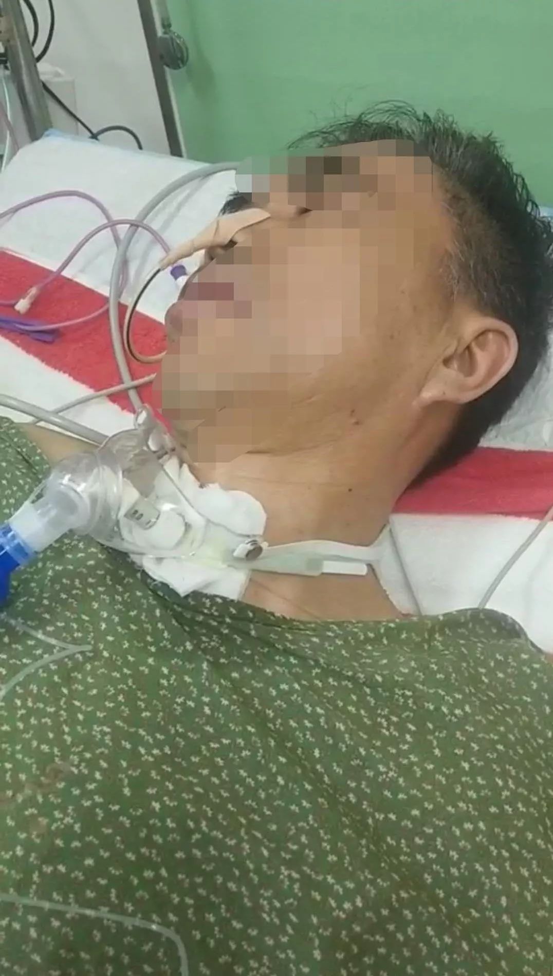 胡叔叔身上插满了管子,