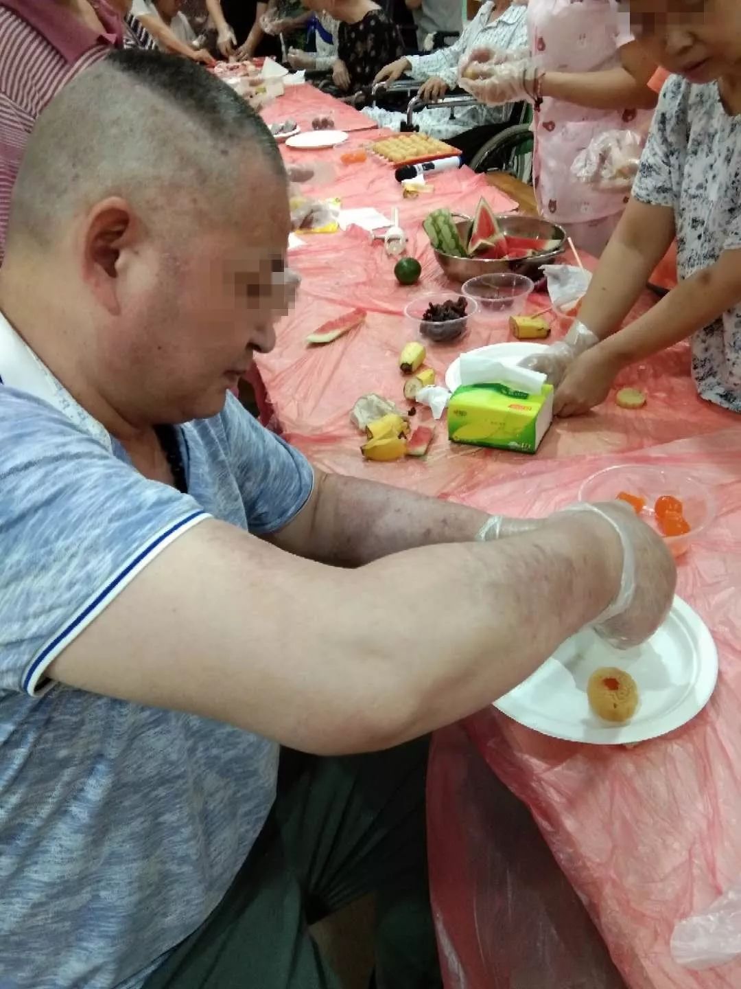 在中秋节活动上,波叔正全神贯注地做月饼