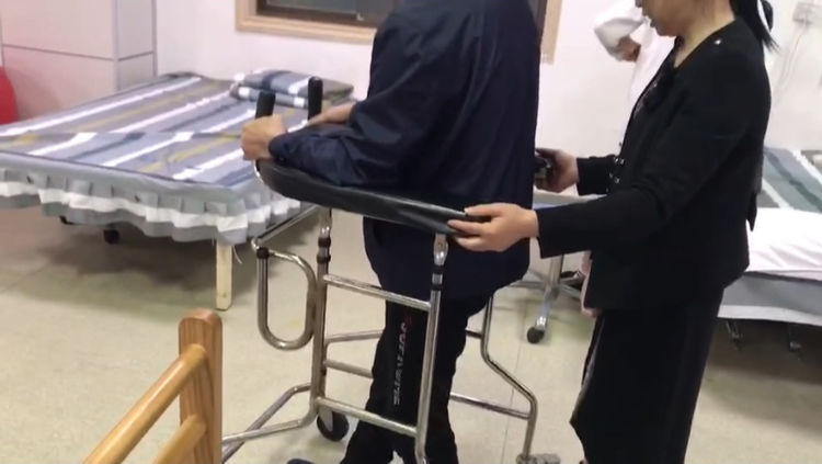 根据唐叔想早日走起来的强烈愿望,康复治疗团队及时更换治疗方案,为唐叔进行了站位平衡、坐起训练、核心稳定性训练、重心转移训练、步行训练等一系列康复项目,经过第二个月的康复治疗,唐叔已经能够在监护下独立行走。
