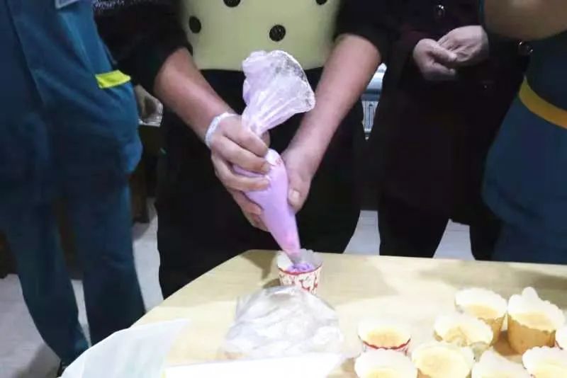 再把蛋糕液倒入一个个小纸杯中放入烤箱烘烤,最后在烤好的纸杯蛋糕上加入奶油和自己喜欢的配料,把蛋糕装饰成自己喜欢的样子,体验烘焙蛋糕的乐趣。