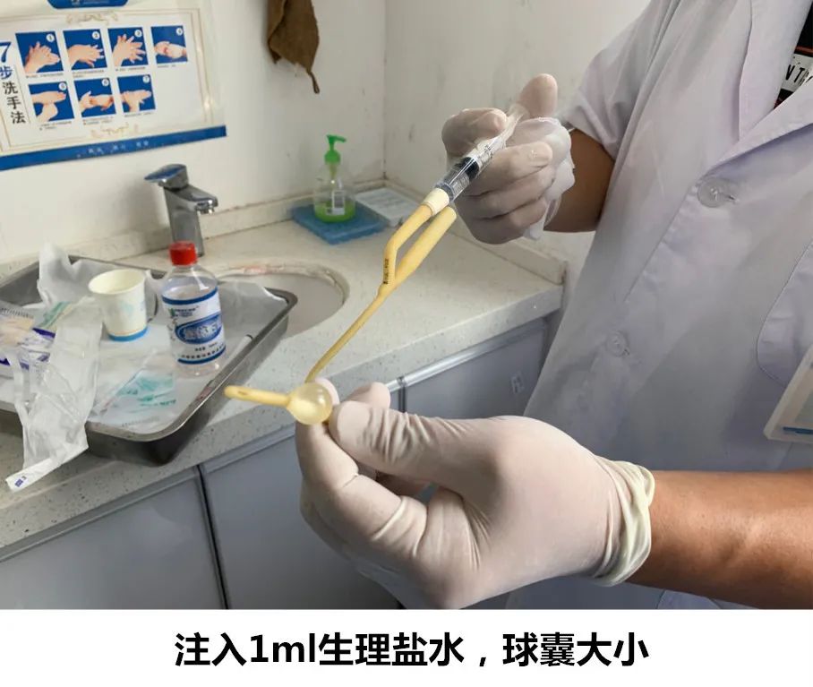 欧阳文湘医生正在为患者进行导管球囊扩张治疗,采取注水方式使球囊充盈,通过注水量变化改变球囊直径,逐渐扩张环咽肌。扩张后配合直接摄食训练、低频电刺激与手法治疗。