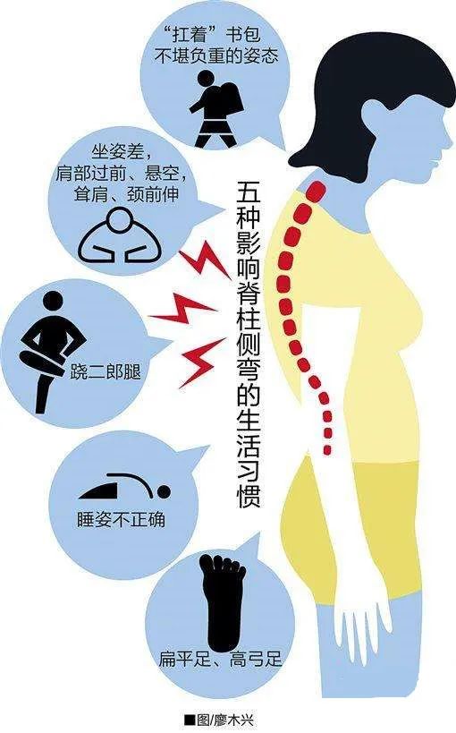 知道吗,现在的脊椎侧弯很多都是由于孩子不良的生活、学习习惯,或者背负过重的书包造成的。因为小孩正在发育,骨头可塑性很强,不良的习惯和过重的书包,长时间就会诱发脊椎性疾病的发生,严重的可能会引起脊椎畸形,如驼背或脊椎侧弯。